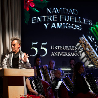 Los pasados 28 y 29 de diciembre la Orquesta Sinfónica de Acordeones de Bilbao celebró sus tradicionales galas de Navidad, "Entre fuelles y amigos". El público, que llenó la sala BBK ambos días, disfrutó del espectáculo brindando con una copa de vino, cortesía de Bodegas Campillo, con la presencia de iconos y personajes ilustres de la villa. En esta ocasión nos visitaron Sabino Arana, la Universidad de Deusto, la Otxoa (¡de carne y hueso!), e incluso pudimos escuchar al maestro fundador de la Orquesta Sinfónica de Acordeones de Bilbao, Josu Loroño. Los encargados de darles vida fueron los compañeros de la propia Orquesta, Gotzon Lobera, Inmaculada Boneta y La Otxoa.
